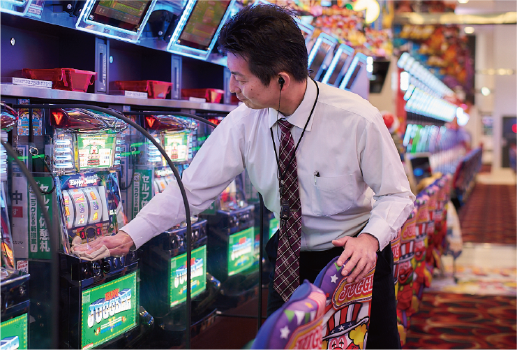一番のモチベーションは、シェア、客数、稼働がアップすること。成果が上がった時には、従業員と情報を共有しながら、ガッツポーズをして喜びます。また、従業員がお客さまと楽しそうに接している姿を見ると、嬉しい気持ちになります。お客さまからいただいた「従業員が好きだからこの店に通っている」というお声は、今でも忘れられません。以前経験した新店の立ち上げ業務も、現在のモチベーションにつながっています。1280台を有する大型店舗のグランドオープンに向けて準備した半年間、皆の気迫も業務の複雑さも今までにないものでしたが、お客さまからの「ありがとう」の数も過去一番。苦労が一気に報われたことを覚えています。