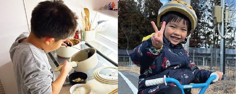 2人の子どもと一緒に過ごします。天気の良い日は公園へのおでかけがほとんど。なるべく行ったことのない公園をめぐるようにして、公園ごとに異なる景色や遊びを楽しんでいます。家の中で過ごす際は、みんなで本を読んだり、ゲームをしたり。上の子とは、ナポリタンやオムライスなど一緒に料理をつくることも増えました。今年は家族で帰省や旅行にも行きたいねと話していて、楽しみです。